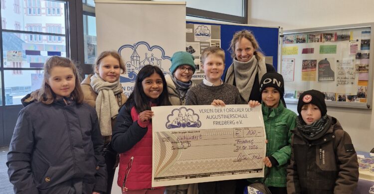 Beim diesjährigen Wettbewerb um die meisten Mitglieder hat die 5d mit Anne Dienstbach den Scheck für die Klassenkasse gewonnen – 100 Euro! Herzlichen Glückwunsch! Am Tag der offenen Tür wurde der Gutschein der Lehrerin und den vor Ort anwesenden Schülern feierlich überreicht!